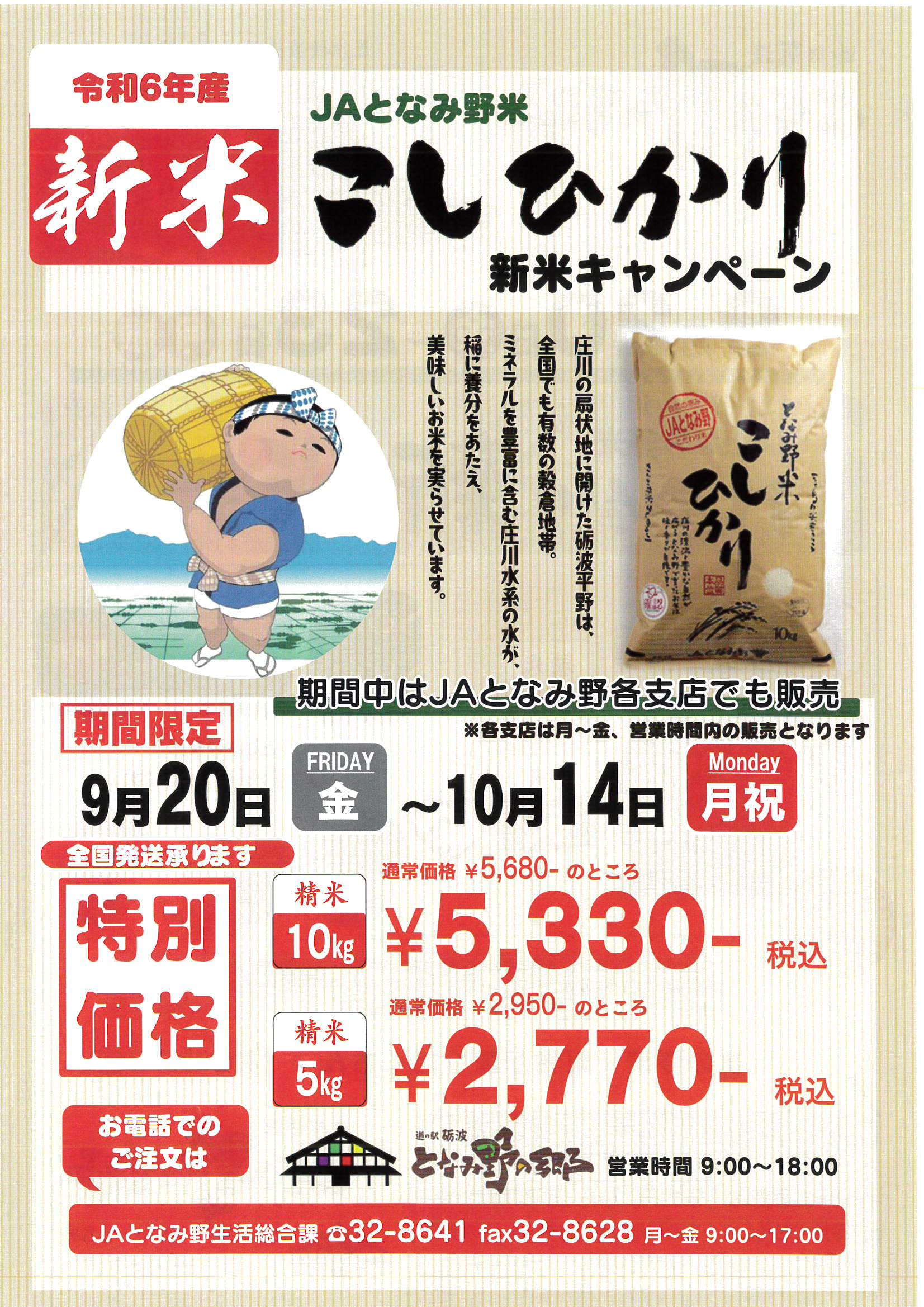 令和6年産となみ野米こしひかりの新米キャンペーンを開催します。