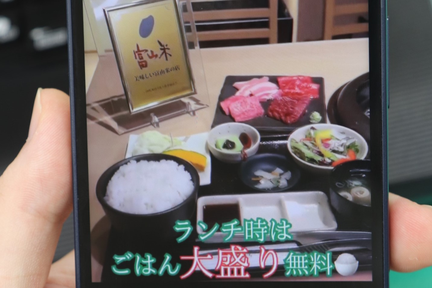 ○美味しい富山米の店は、富山県や中央会などでつくる県米消費拡大推進協議会が、長年取り組んできた企画だ。富山米を100%使うなど基準を満たした147店が登録している。中央会はこれまでも公式ホームページに全店の一覧やマップを掲載してきたが、さらに宣伝力を高めたいと、三銃士はSNSで動画を発信する取り組みをスタートさせた。第1弾は富山市の「和風焼肉 富山育ち」である。よくできているので、一度ぜひ、インスタでご覧いただきたい。
