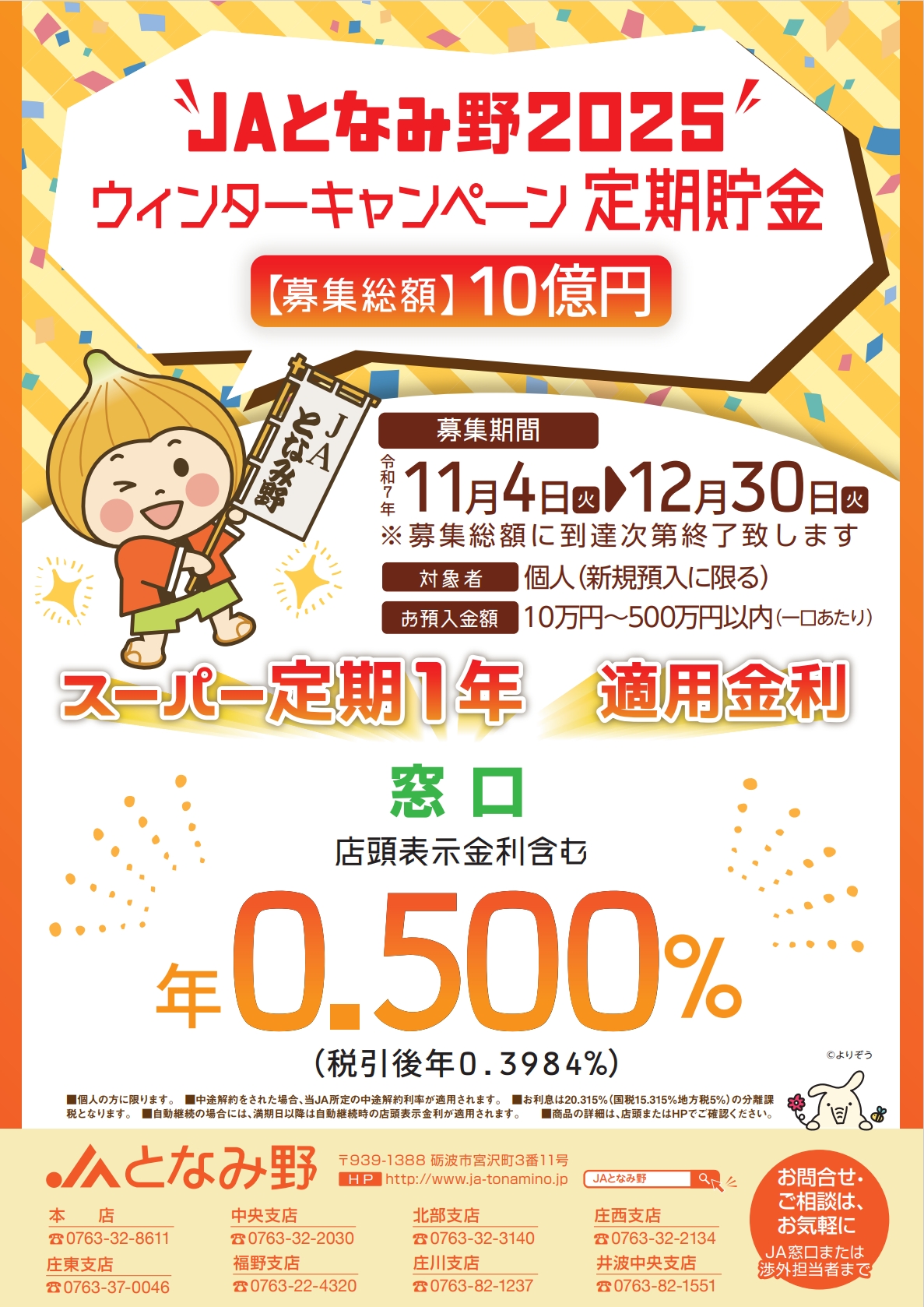 JAとなみ野2025 ウィンターキャンペーン定期貯金
