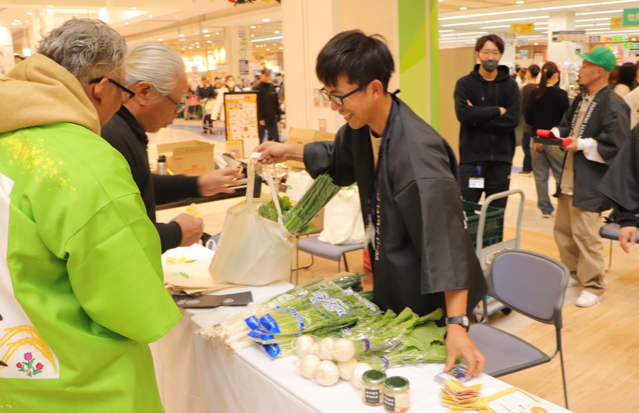○イベントは、富山県がファボーレで開いた「つながる!ファーマーズフェス」。農産物の生産コストが上昇している現状を、消費者のみなさんにも知ってもらいたいと考え、農家と消費者がふれあう場をつくったのだという。会場のスタッフが配っていたちらしには、地産地消のメリットや、農産物の価格に理解を求めるメッセージが書かれていた。