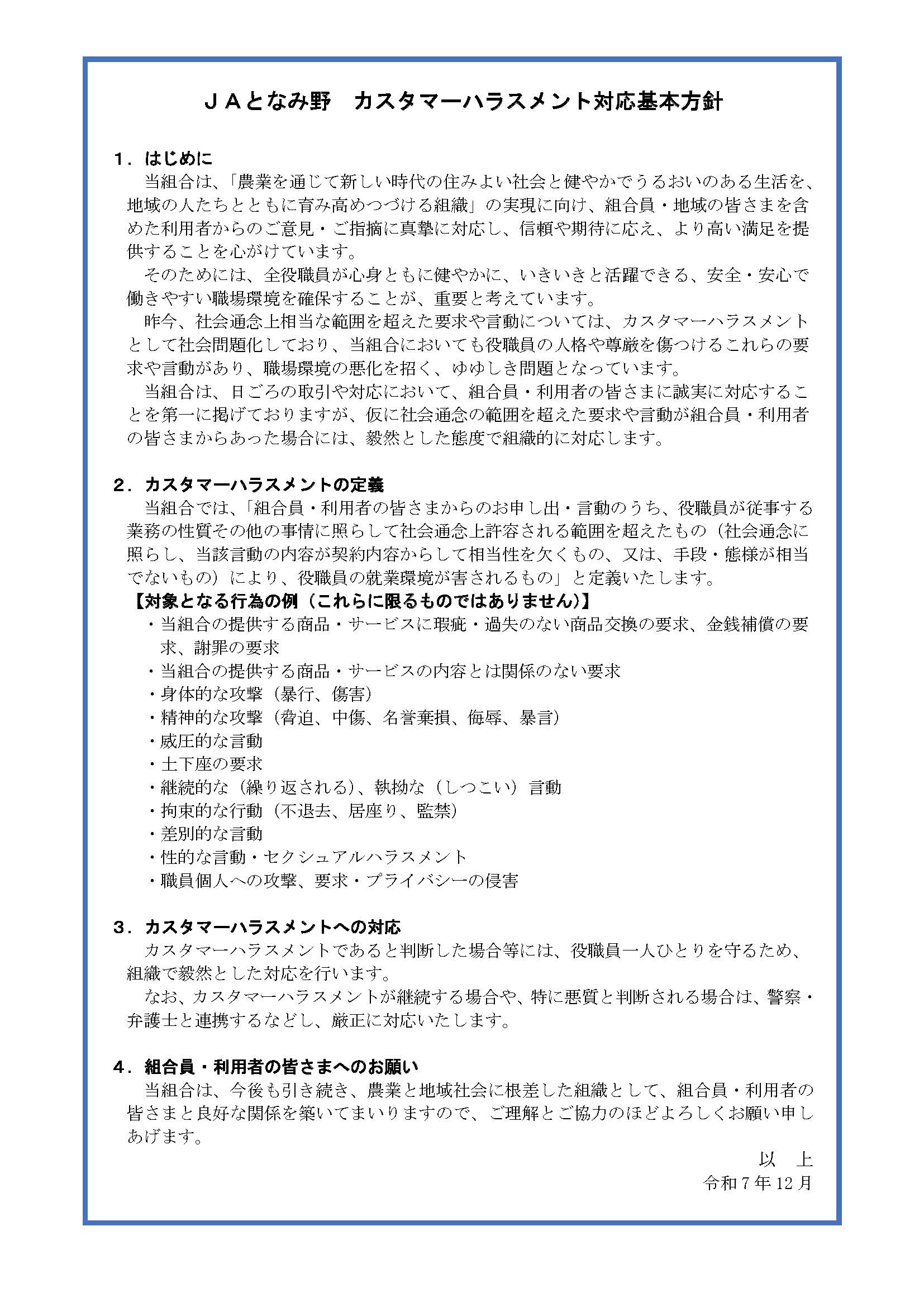 カスタマーハラスメント対応基本方針について