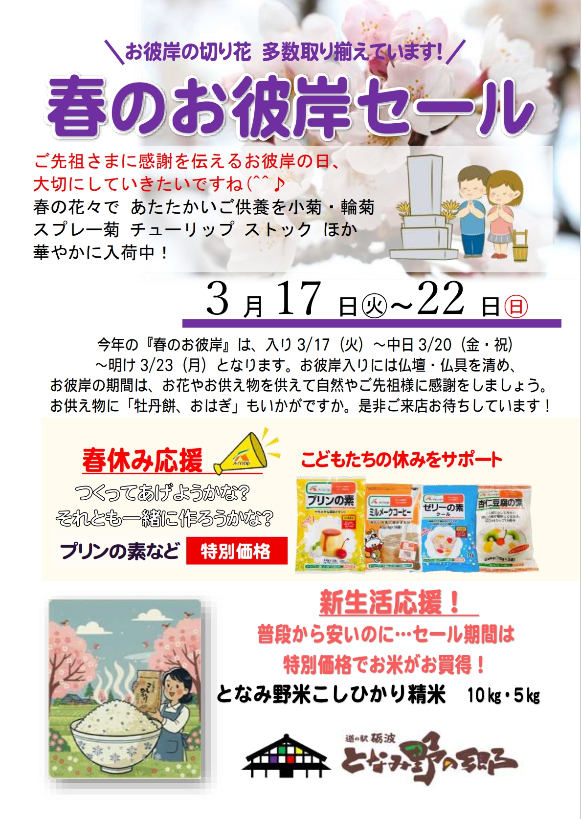 【となみ野の郷】春のお彼岸セールのお知らせ