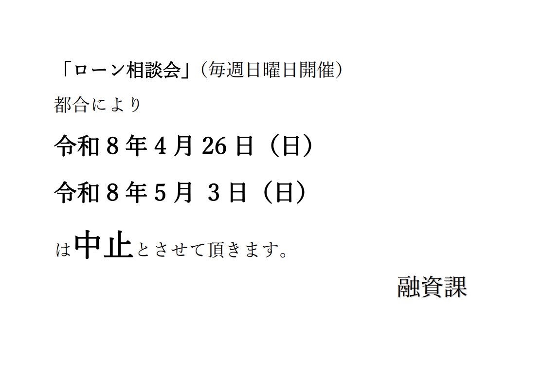 ローン相談会中止のお知らせ お知らせ
