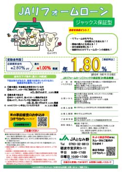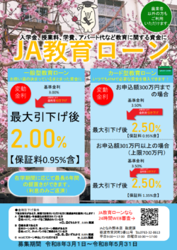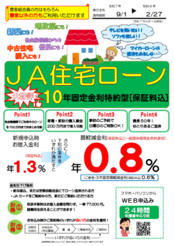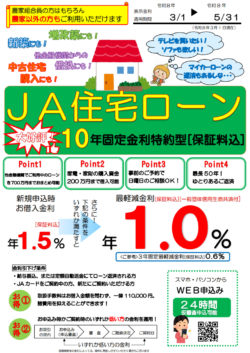 ※繰上返済を行う場合や返済条件を変更する場合には別途当JA所定の手数料が必要となります。