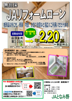 ※その他、各種営農ローンをお取扱しています。窓口にてご相談を受付しています。